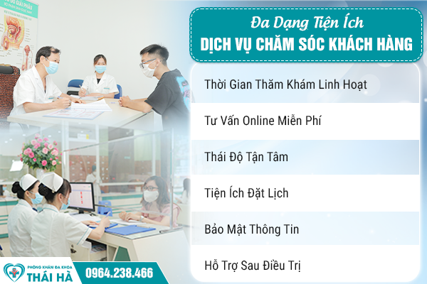 Bên cạnh đó, nhằm hỗ trợ tài chính cho người bệnh, Thái Hà áp dụng chính sách ưu đãi đặc biệt dành cho khách hàng đặt lịch hẹn trước qua hệ thống tư vấn online (website/hotline): namkhoathaiha.vn