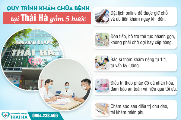Quy trình khám tại Thái Hà gồm 5 bước rõ ràng: