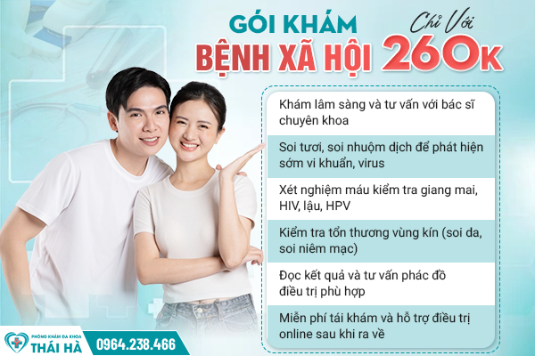 Đặc biệt, nhằm san sẻ gánh nặng tài chính và khuyến khích bệnh nhân tầm soát sớm, ngoài Gói Khám Sàng Lọc Bệnh Xã Hội 260.000 VNĐ, Phòng khám Thái Hà còn cung cấp các chương trình ưu đãi, giúp bệnh nhân giảm thiểu gánh nặng chi phí khi tiến hành điều trị chuyên sâu bằng công nghệ cao. (Áp dụng Khi Đặt Lịch Hẹn Trước):