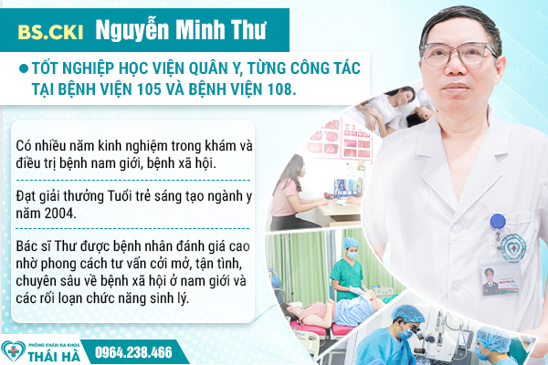 Bác sĩ Thư được bệnh nhân đánh giá cao nhờ phong cách tư vấn cởi mở, tận tình, chuyên sâu về bệnh xã hội ở nam giới và các rối loạn chức năng sinh lý.