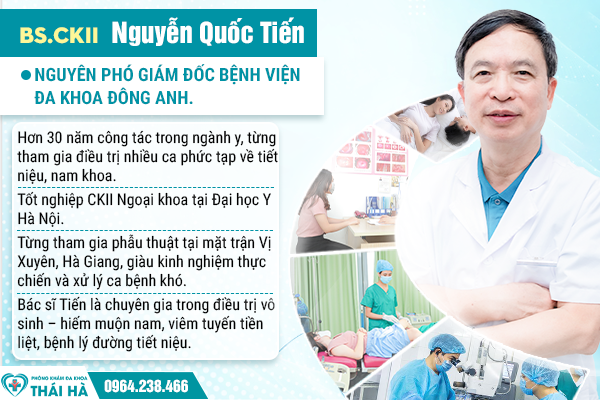 Bác sĩ Tiến là chuyên gia trong điều trị vô sinh – hiếm muộn nam, viêm tuyến tiền liệt, bệnh lý đường tiết niệu.