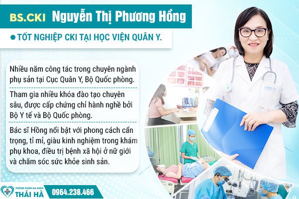 - BS.CKI Nguyễn Thị Phương Hồng: Nguyên bác sĩ Cục Quân Y – Bộ Quốc Phòng, có chuyên môn sâu về điều trị viêm nhiễm tái phát và kế hoạch hóa gia đình, giúp hàng nghìn phụ nữ tìm lại sự tự tin và sức khỏe vốn có.